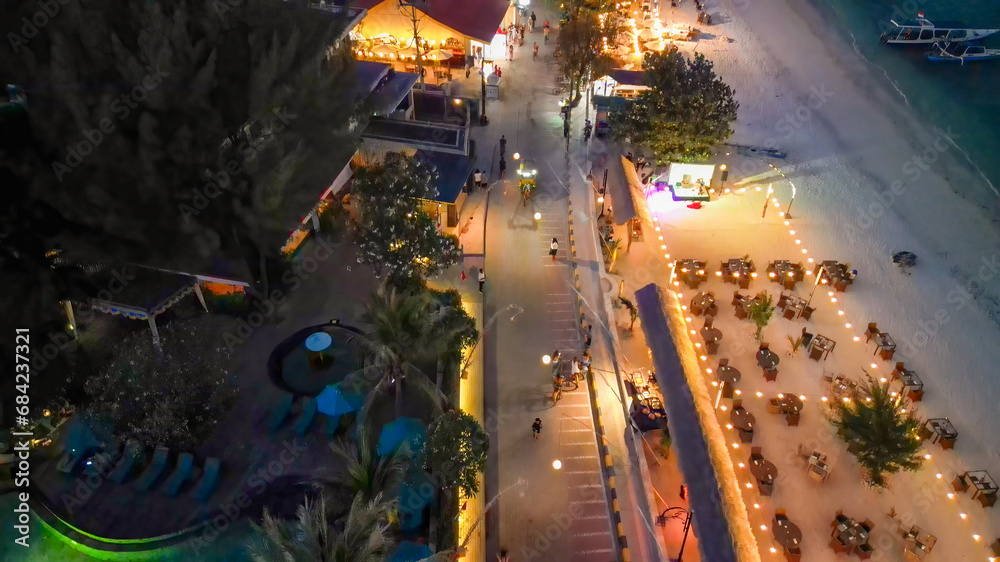 Tableau sur toile Night aerial view of Gili Trawangan, Lombok