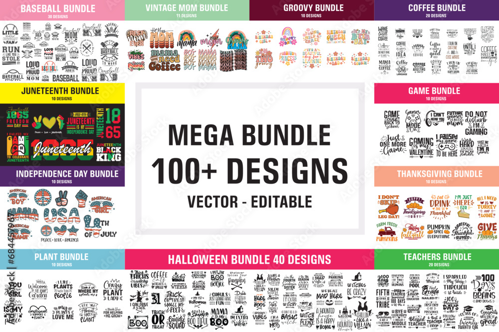 Tableau sur toile 100+ t shirt designs mega SVG Bundle, T Shirt Designs SVG, Svg Files for Cricut,