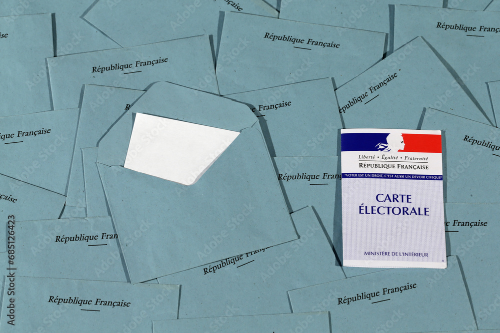 Tableau sur toile Ensemble d'enveloppes bleues avec un bulletin de vote et carte d'électeur