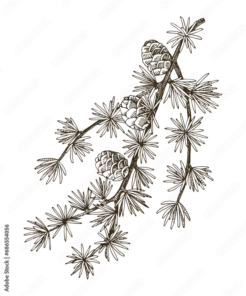 Tableau sur toile European larch tree branch vector