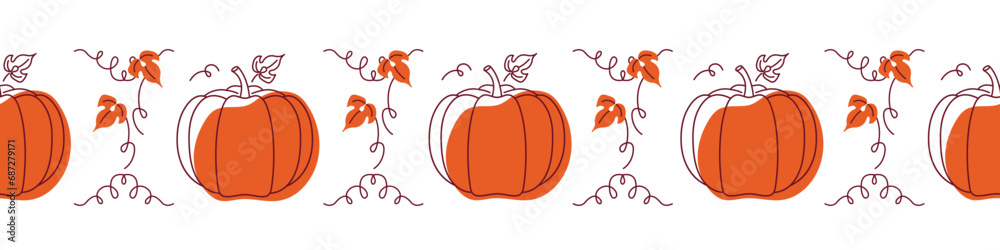 Tableau sur toile Horizontal seamless border with pumpkins and floral decor