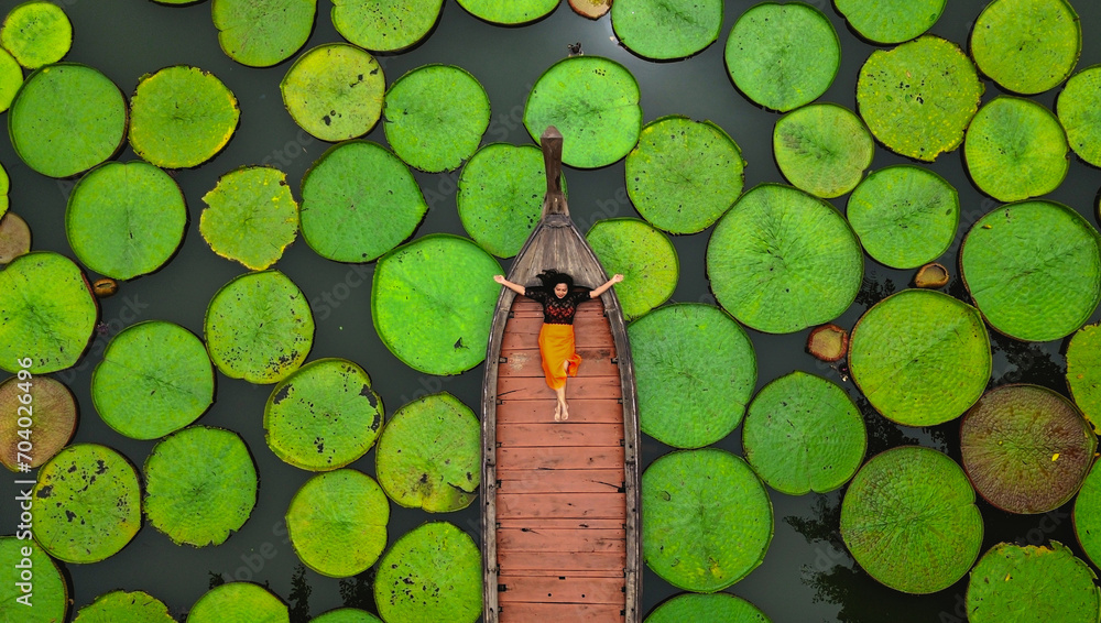 Tableau sur toile Aerial Landscape of Victoria Waterlily Giant lily pad lake at Phuket Thailand