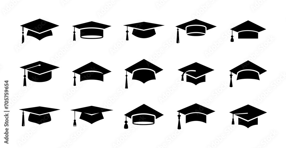 Tableau sur toile Academic graduation cap icon set vector illustration