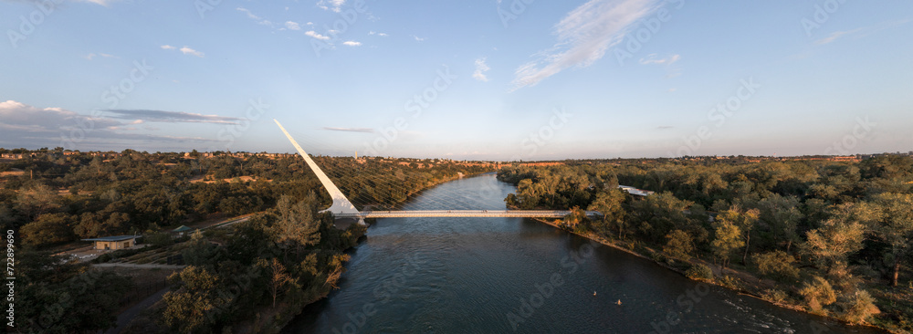 Tableau sur toile Sundial Bridge at Turtle Bay that crosses the Sacramento River in Redding - Aeri