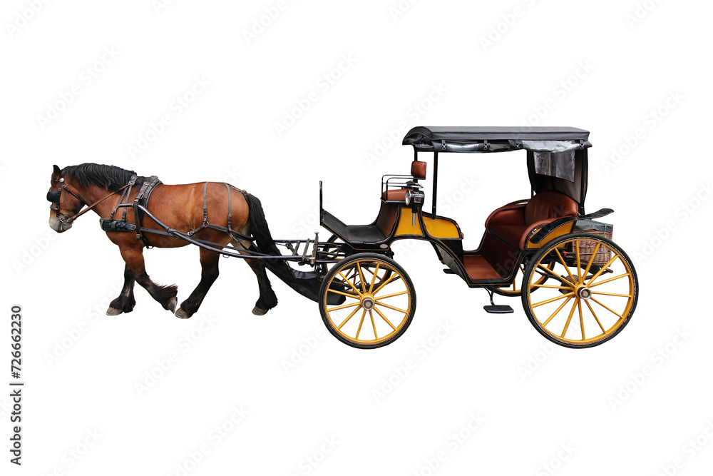 Tableau sur toile Antique wooden horse-drawn carriage isolated png