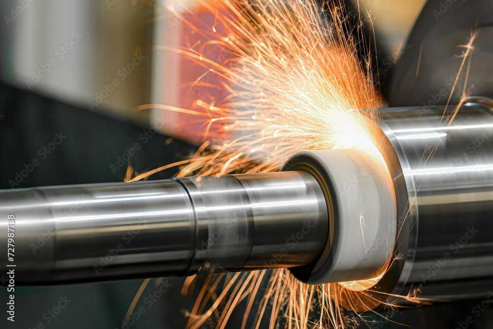 Tableau sur toile Sparks from the grinding wheel during internal grinding on a cylindrical grinding machine