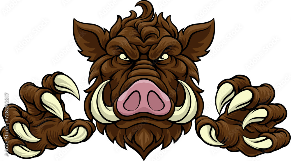 Tableau sur toile A wild boar, hog razorback warthog pig mean tough cartoon sports mascot