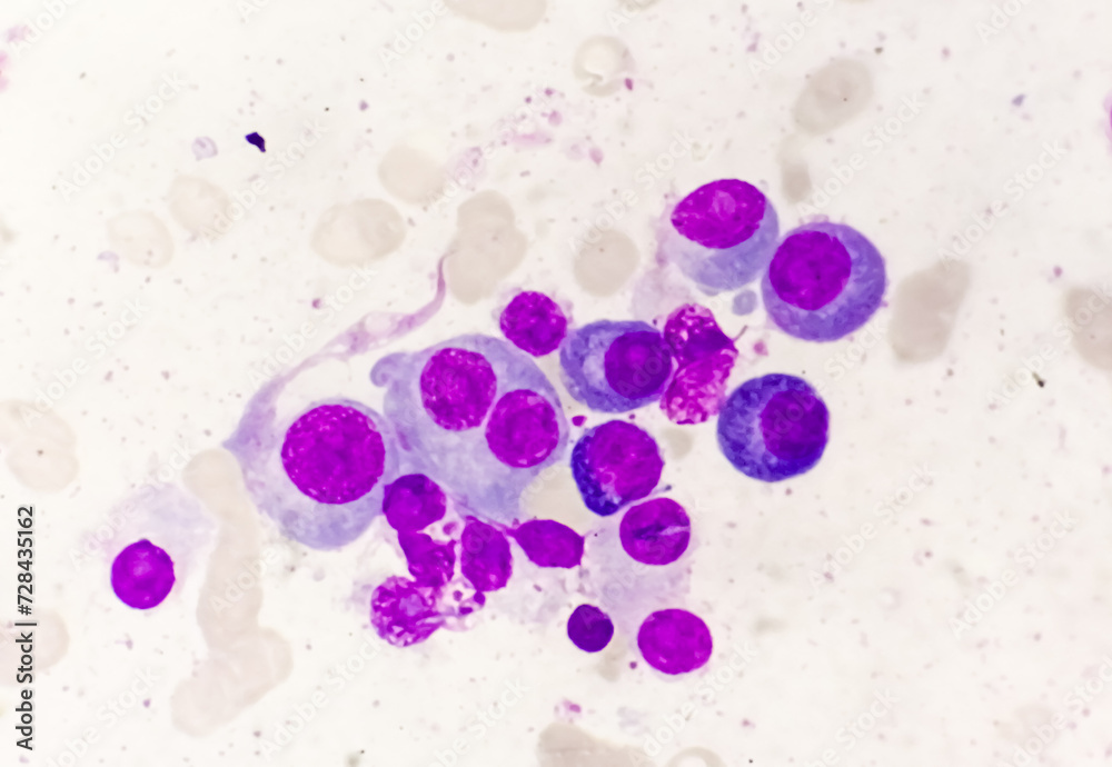 Tableau sur toile Microscopic view of bone marrow slide showing Multiple myeloma, a type of bone marrow cancer