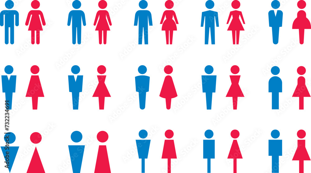 Tableau sur toile 男女のトイレマークのベクターイラストセット