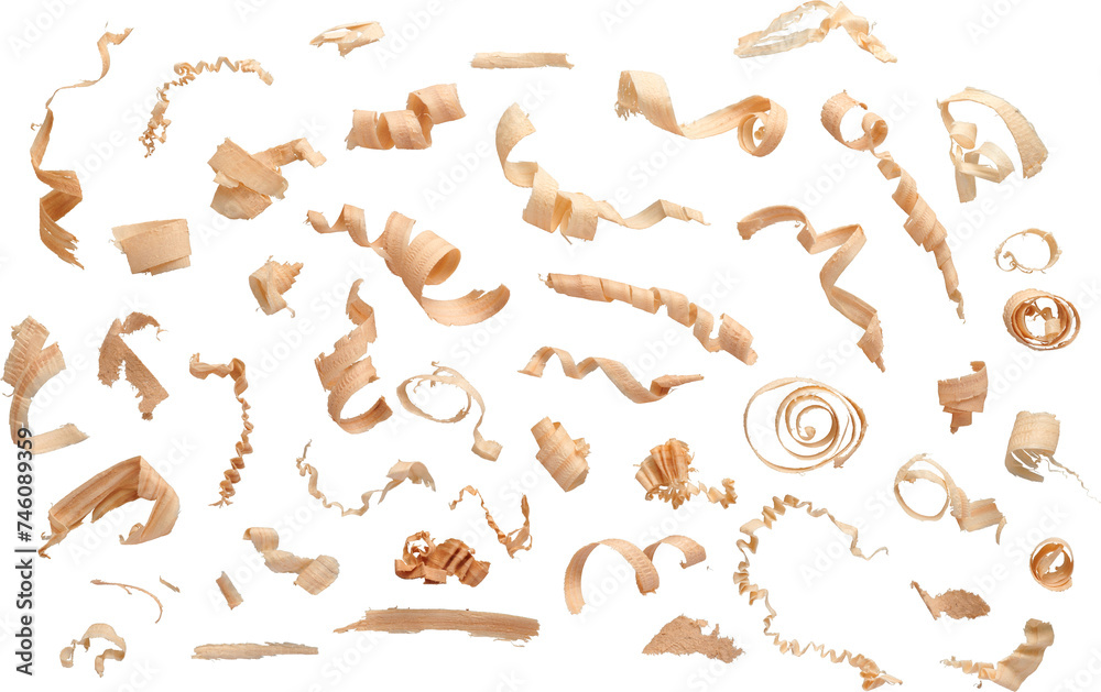 Tableau sur toile Premium Isolated wood-shaving elements curled - Ready to use PNG Cutout Premium