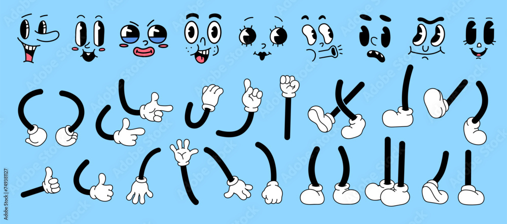 Tableau sur toile Cartoon hands, legs and faces for retro comic character