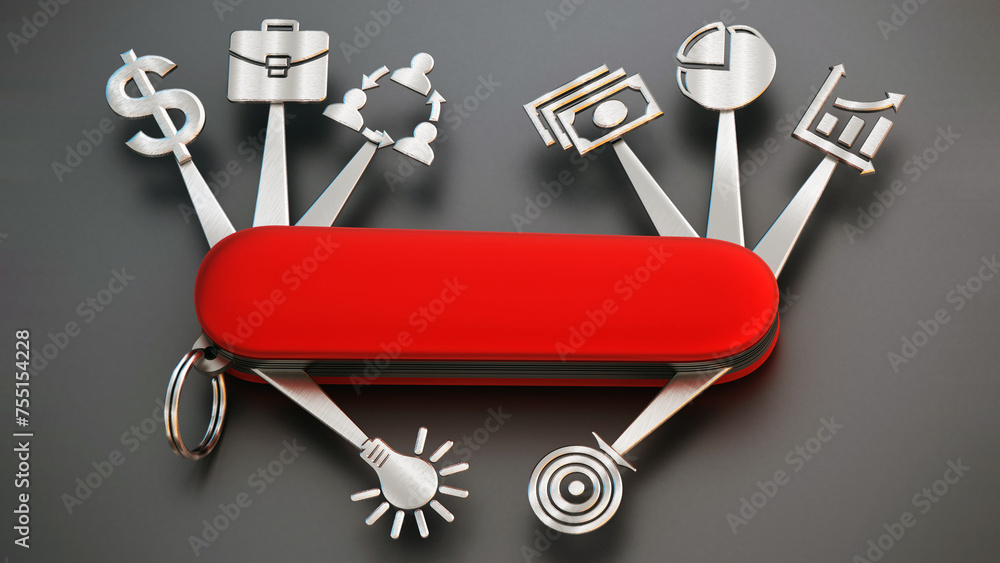 Tableau sur toile Technology icons connected to Swiss knife. 3D illustration