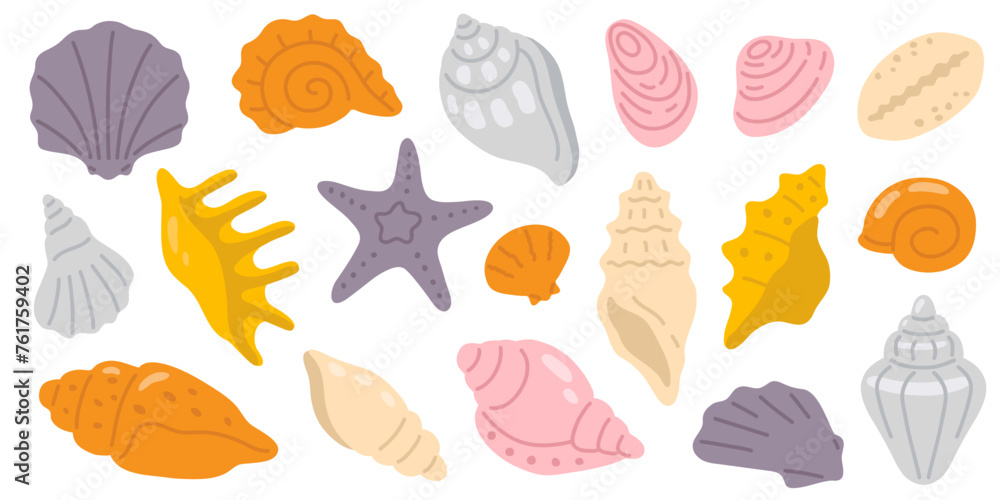 Tableau sur toile Vector illustration set of cute doodle seashell for digital stamp,greeting card,