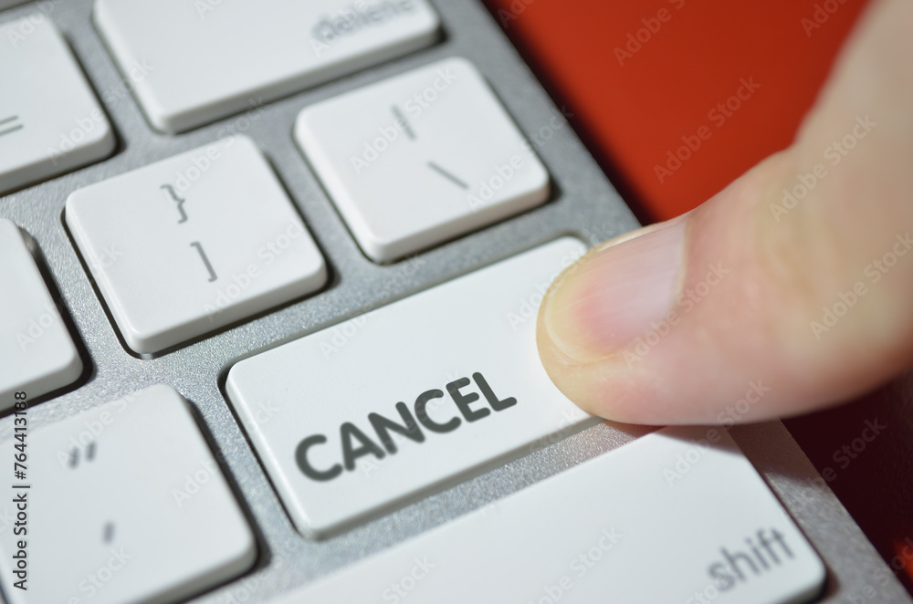 Tableau sur toile Cancel, illustrated by finger pressing cancel key down.