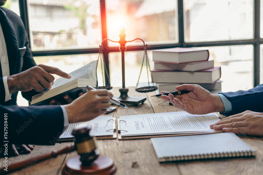 Tableau sur toile Lawyer and justice concept Discussion between male lawyer and client, giving advice and proceeding with financial legal matters