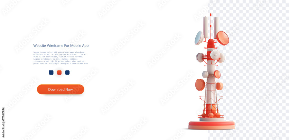 Tableau sur toile Stylized 3D Telecommunication Tower with Dishes and Antennas on Transparent