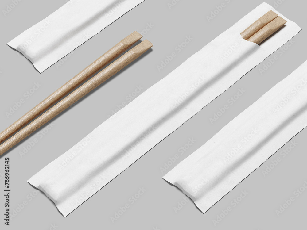 Tableau sur toile White Blank Packaging Mockup for Chopstick on Grey Background
