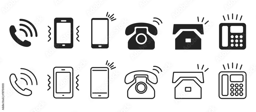 Tableau sur toile 電話、スマートフォンのアイコンセット、スマホのバイブレーション、固定電話のバリエーションイラスト、ベクター素材