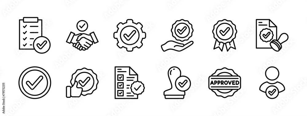 Tableau sur toile Approved and certified thin line icon set