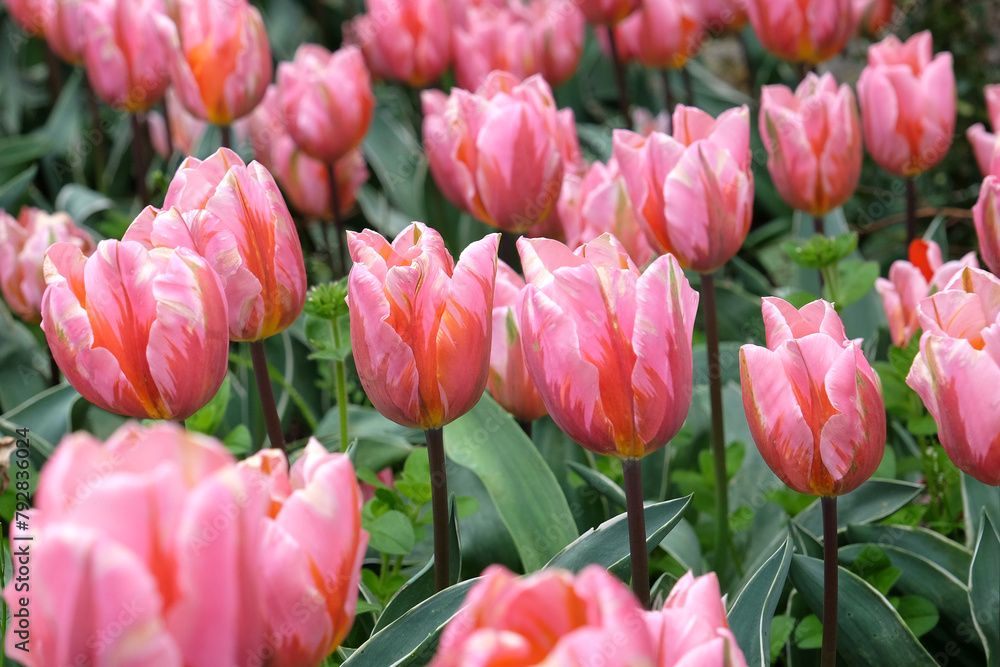 Tableau sur toile Pink and orange triumph tulip, Tulipa ‘Pretty Princess’ in flower