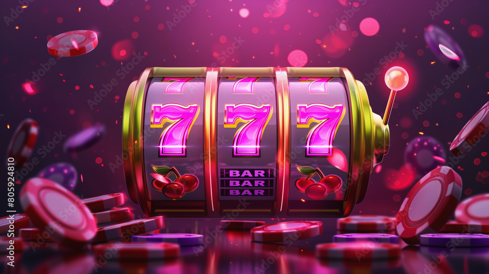 Tableau sur toile Banner of mobile online casino application with 777 big win slot machine