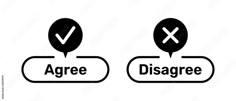 Tableau sur toile Agree and Disagree buttons with right and wrong symbols
