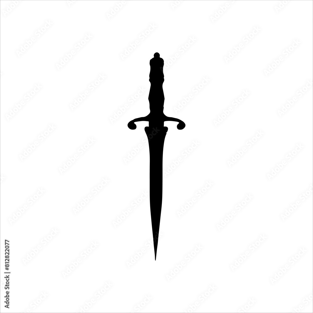 Tableau sur toile Vintage dagger silhouette isolated on white background