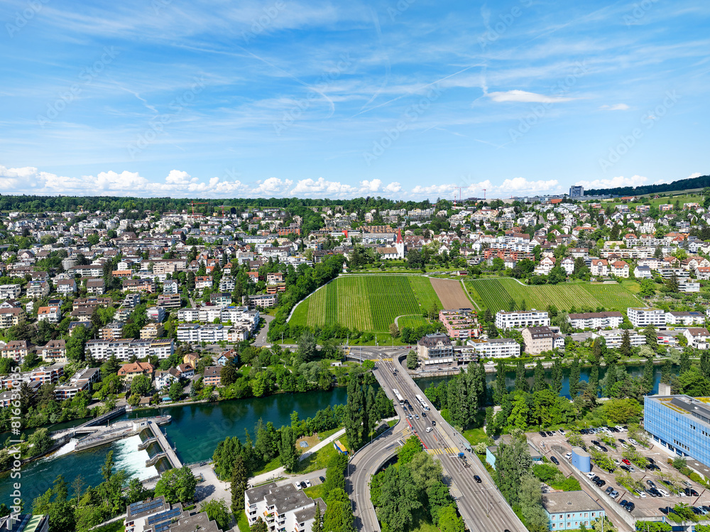 Tableau sur toile Aerial view of district Grünau and district Höngg with Limmat River and Europe Bridge at Swiss City of Zürich on a sunny spring afternoon