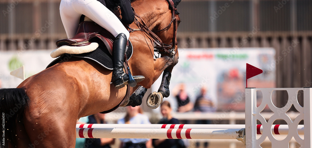 Tableau sur toile Horse, show jumping horse, close-ups at a tournament.