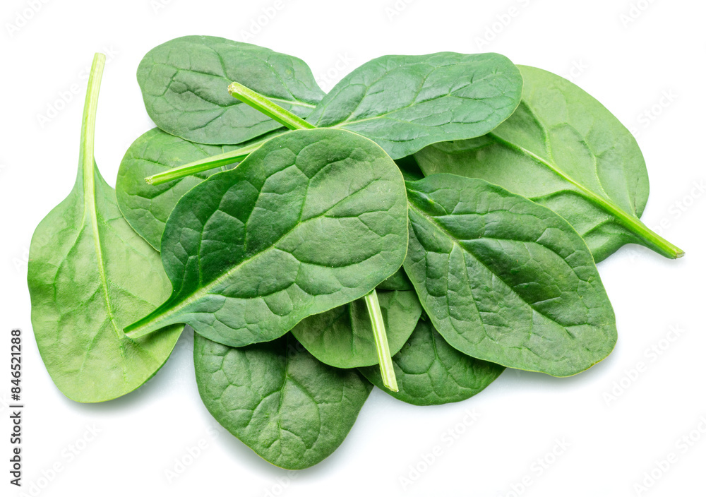 Tableau sur toile Green fresh spinach leaves isolated on white background.