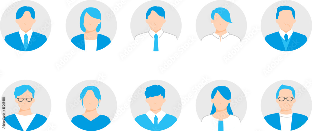 Tableau sur toile 企業で働く様々な年代の男性や女性のアイコンセット。丸背景