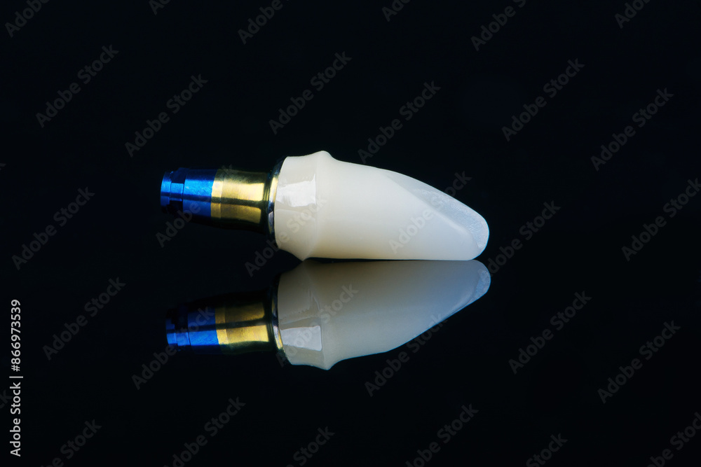 Tableau sur toile Individual abutment bonded to titanium fabric blue and yellow abutment on black
