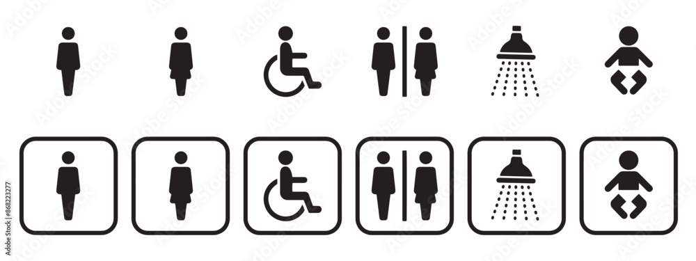 Tableau sur toile toilet vector icons set, male or female restroom wc