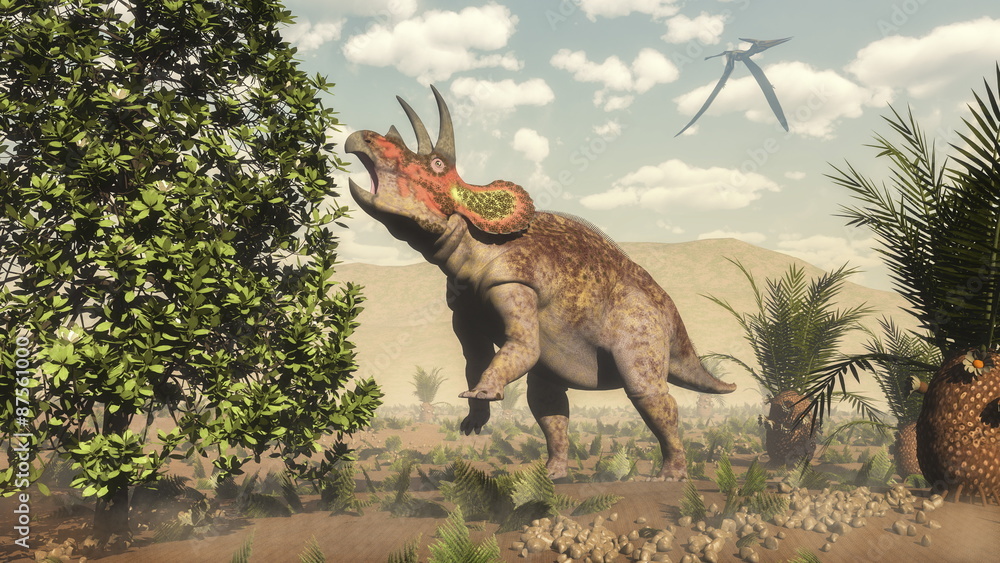 Tableau sur toile Triceratops eating at magnolia tree - 3D render