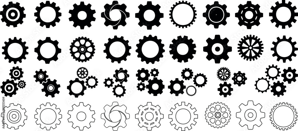 Tableau sur toile Gear icon vector set, black cogwheel vector collection, mechanical gear shapes,