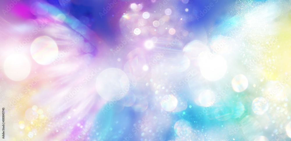 Tableau sur toile Engelhaftes Wesen aus buntem abstraktem Licht mit ausgebreiteten Flügeln als Vor