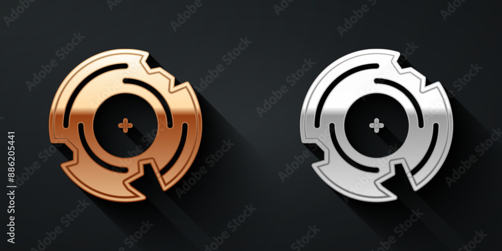 Tableau sur toile Gold and silver Vinyl disk icon isolated on black background