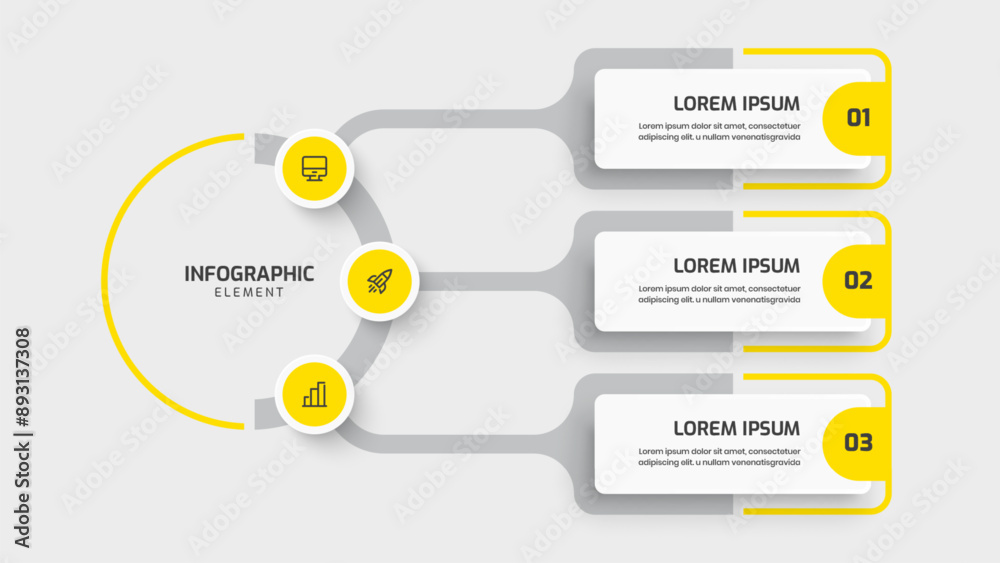 Tableau sur toile Business Central Circle Infographic Template with Yellow Color Circle Label 3 Op