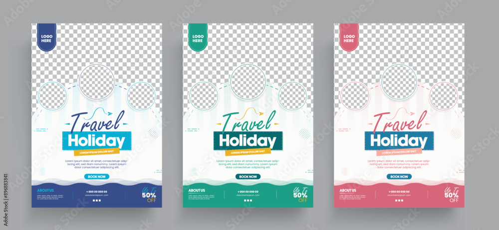 Tableau sur toile Travel Flyer or Poster Template design layout, Travel agency flyer vector posters for business