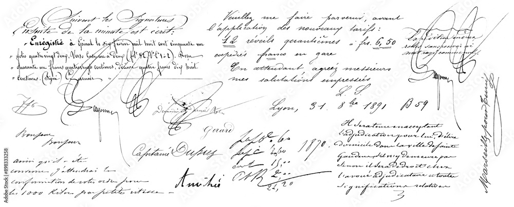 Tableau sur toile bits and pieces of antique French handwriting / calligraphy, letters, documents