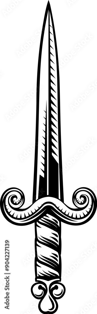 Tableau sur toile A sword or dagger medieval weapon design illustration in a vintage woodcut retro