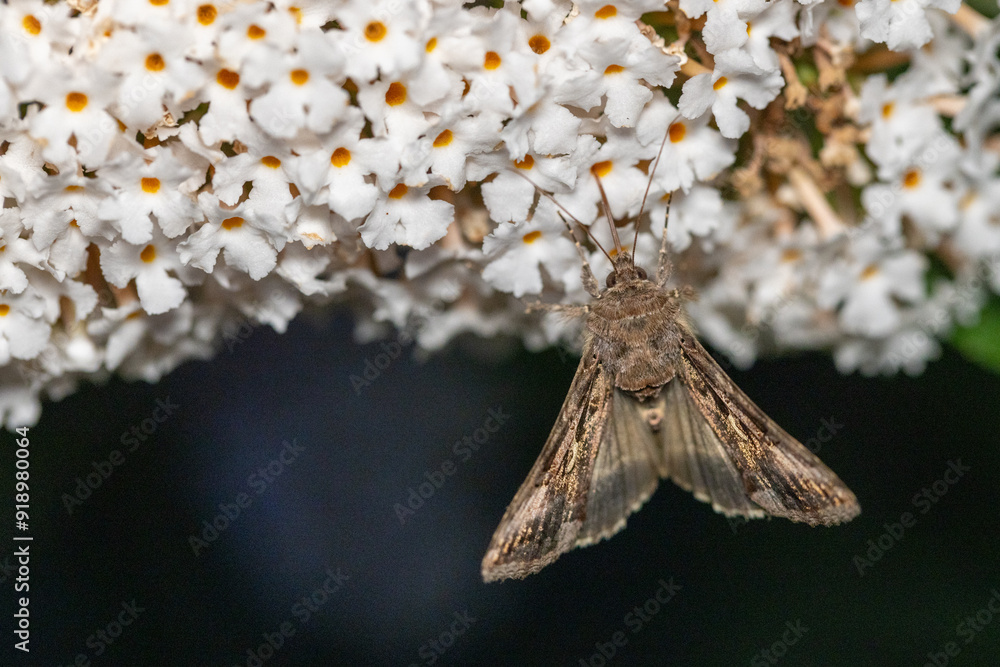 Tableau sur toile A lovely moth is delicately feeding on the sweetly fragrant white blossoms found