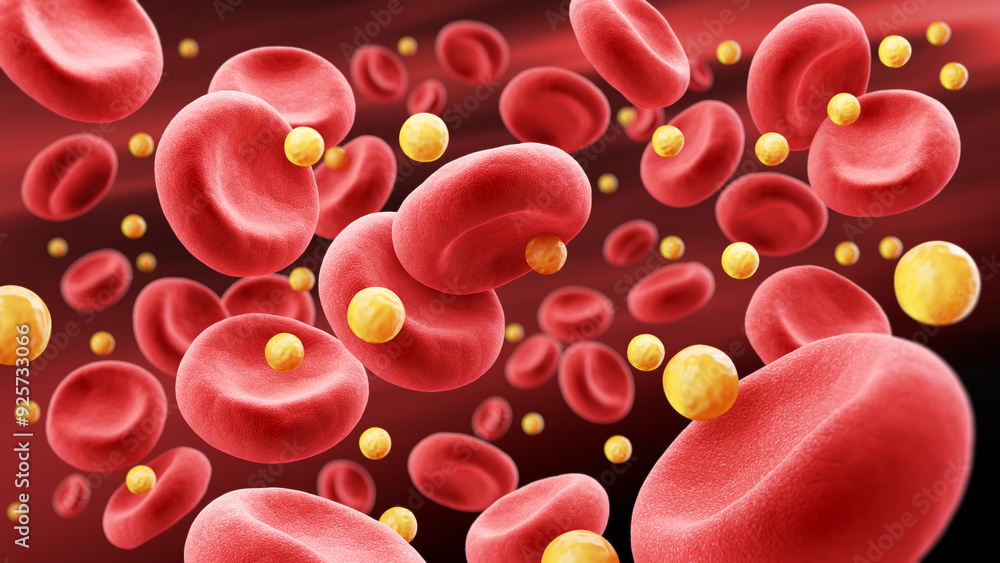 Tableau sur toile blood cell with cholesterol, 3d illustration.