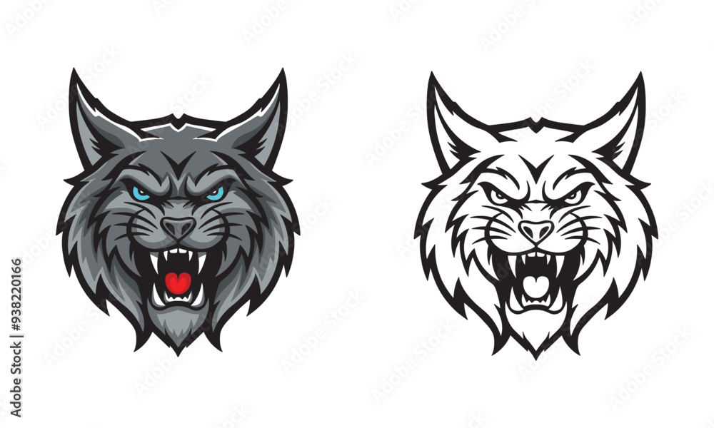 Tableau sur toile Head of an angry gray lynx