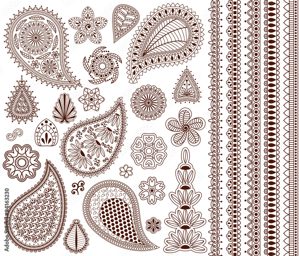 Tableau sur toile Set of oriental ornaments for henna tattoo and for your design
