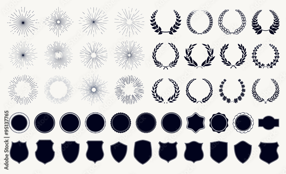 Tableau sur toile Vector set sunburst laurel wreaths and shields