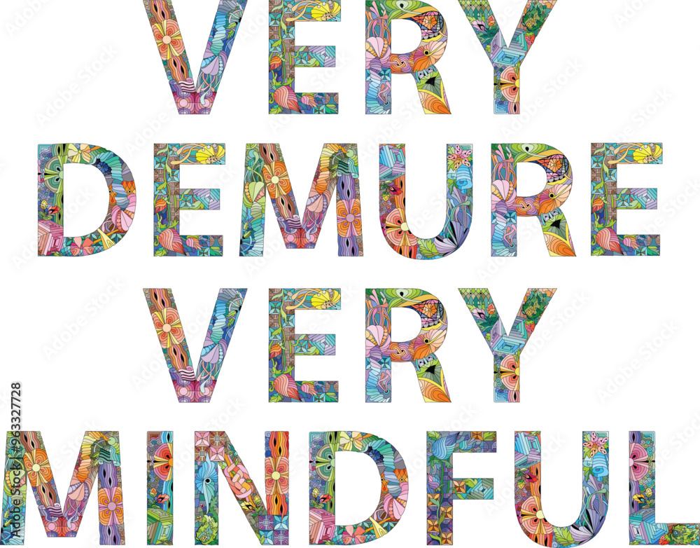 Tableau sur toile Words VERY DEMURE VERY MINDFUL hand drawn modern design vector illustration