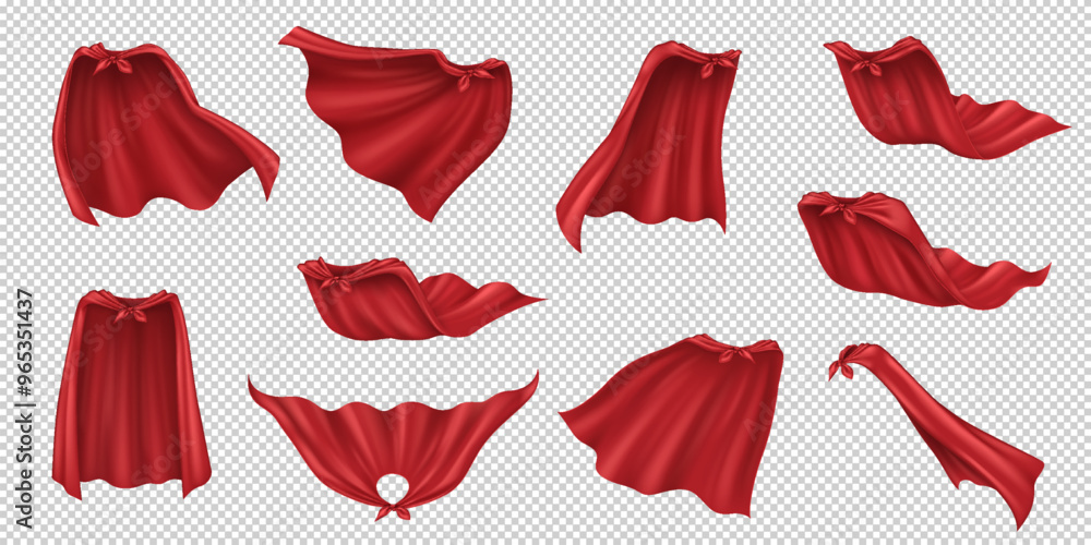 Tableau sur toile Hero capes of red fabric realistic vector illustration set