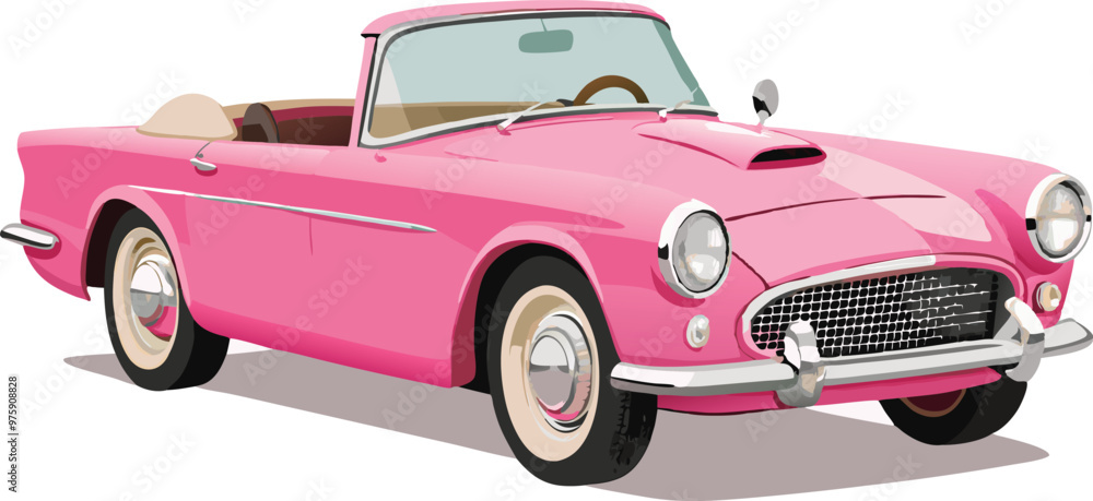 Tableau sur toile Pink convertible vintage car standing in the sun