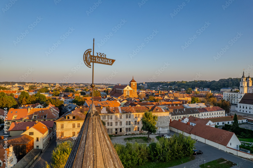 Tableau sur toile Aerial summer evening view of Kaunas old town, Lithuania